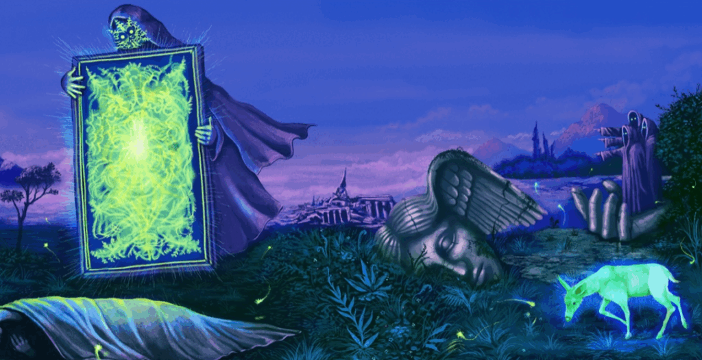 The opener ‘Second Sleep’ teeters between the real and surreal; mixing laid-back, jazz instrumentals with crushing crescendos and eerie vocals. ‘Second Sleep’ ventures to explore the liminal spaces of the subconscious, with the track intertwining the quiet and loud. Delicately mixing maximalist and minimalist elements without sounding heavy or brash, the track transports listeners on a journey into the dreamscape. Culminating in all the right places, ‘Second Sleep’ ascends to a different plane, expanding the otherworldly universe created by Imaginal Disk.