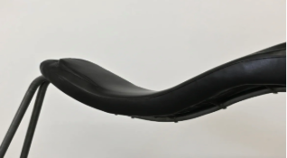 Thomas Griffiths’ Assimilate also marries violence and romance. Having drawn inspiration from JG Ballard’s Crash, their work takes an intimate look into toxic masculinity and the thrill of vehicular irresponsibility. Griffiths beautifully upholstered two motorbike seats together on an upcycled metal frame. It’s an intimate melding of materials that illustrate how “violent imagery connotes desire”.
