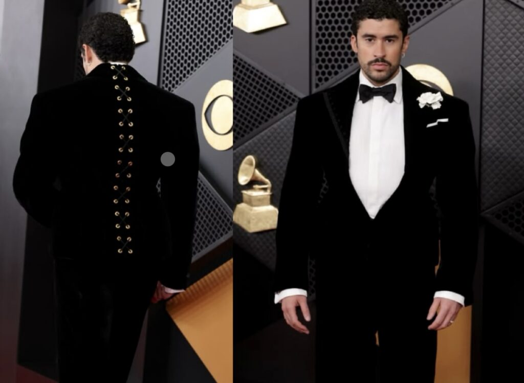 Suited and sharp, Bad Bunny made a statement with a Schiaparelli Tuxedo that featured an unusual addition: a corset, to create a structured shape for the contours of the body. The tailoring of the suit was done to perfection, along with the use of the velvet material it was made from, adding a decadent and luxurious finish that exuded from the garment. The openly observable criss-cross accent on the back of the tuxedo jacket created an interesting look and gave it some flair compared to a regular tux.